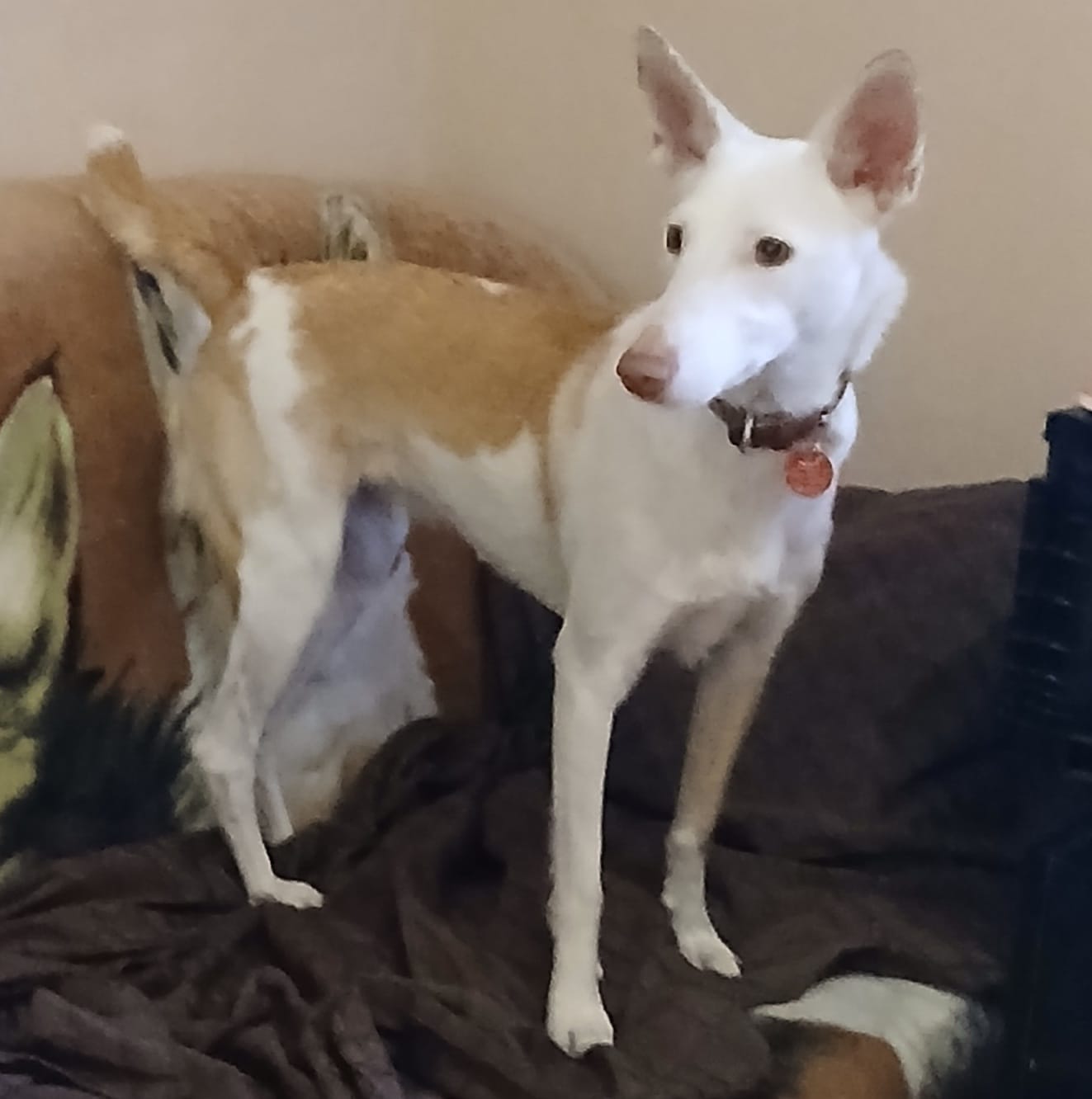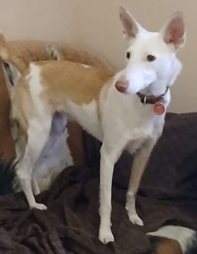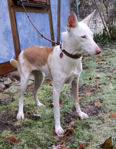 Suki kommt ursprünglich aus Spanien und gehört einer windhundähnlichen Rasse an, die für die überwiegend eigenständige Wildkaninchenjagd gezüchtet wurde. Suki ist Menschen gegenüber freundlich und aufgeschlossen zugewandt. Fremden und unbekannten Situationen ist sie anfangs gegenüber kurz zurückhaltend und vorsichtig. Sie ist sehr verträglich mit Artgenossen und akzeptiert auch Katzen.